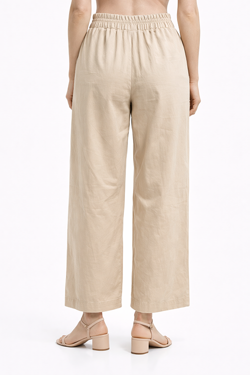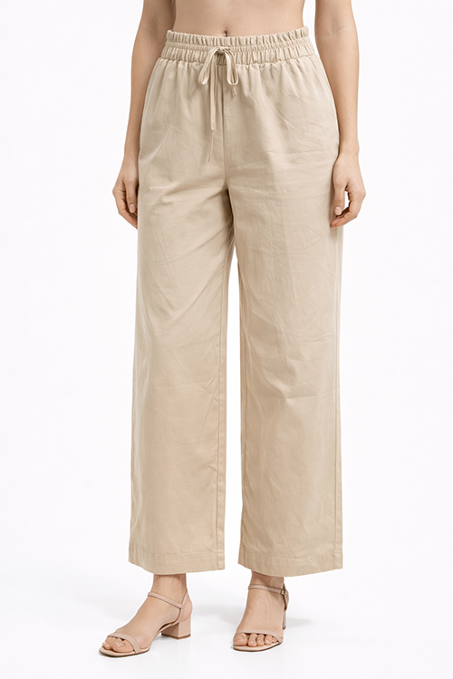 LINEAS  Pantalón recto beige de cintura elástica