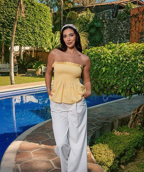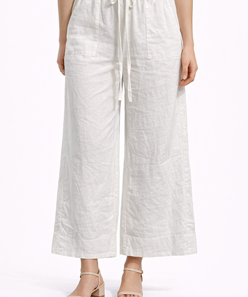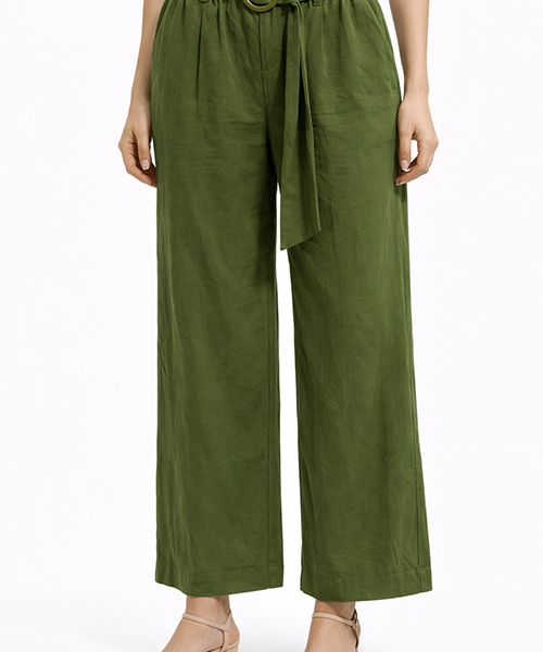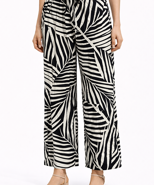 Pantalón de tiro medio con pretina elástica y caída recta amplia. Tela ligera con movimiento natural, ideal para looks cómodos y versátiles.
